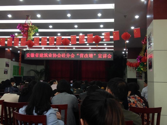 安徽省建筑業(yè)在2016年05月01日起營業(yè)稅改為增值稅,安徽省建筑業(yè)協(xié)會(huì)砼分會(huì)舉辦營改增宣講會(huì)。我公司安排財(cái)務(wù)及相關(guān)管理人員參加學(xué)習(xí)。