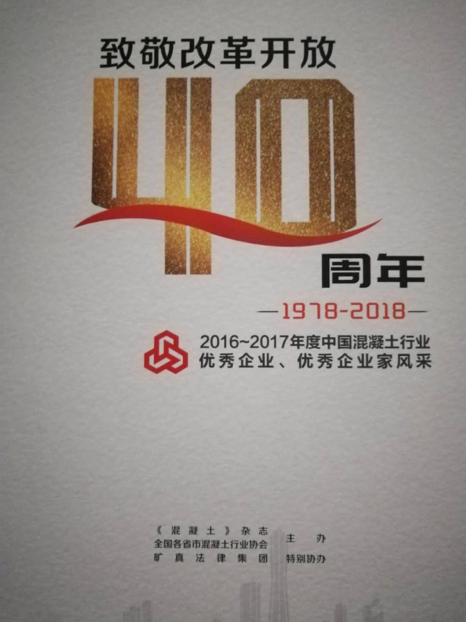2018年10月21日至24日我公司領(lǐng)導(dǎo)赴浙江參與《2018年中國混凝土年會(huì)暨新時(shí)代混凝土行業(yè)綠色高性能發(fā)展論壇大會(huì)》,并在會(huì)上被評(píng)為2016——2017年度中國混凝土行業(yè)優(yōu)秀企業(yè)。公司積極參與行業(yè)大會(huì),把握混凝土行業(yè)新技術(shù)、新發(fā)展、新導(dǎo)向,與時(shí)俱進(jìn),不斷創(chuàng)新。
